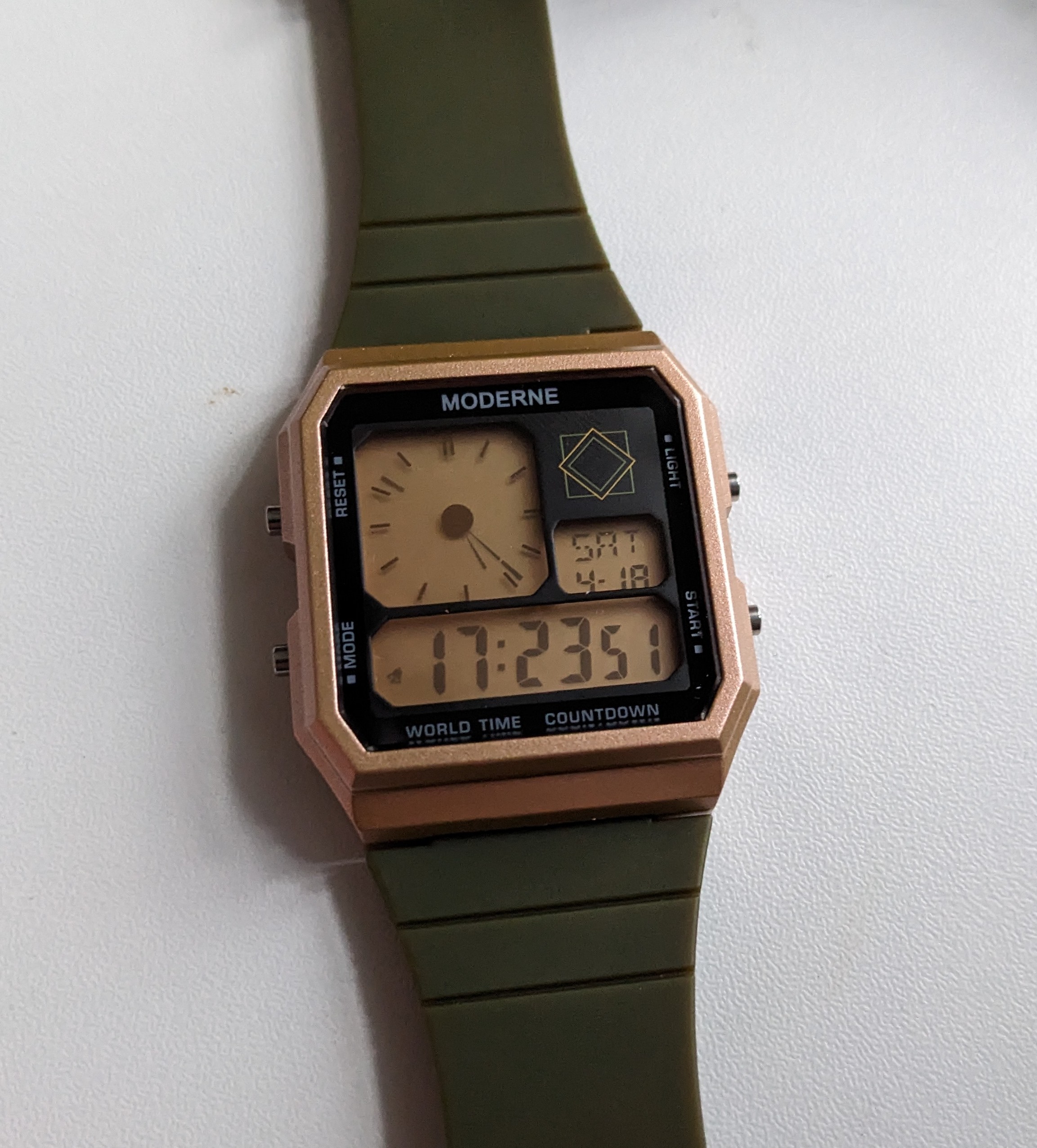Engineered for everyday wear, The Moderne pairs lightweight durability with a multifunction digital module—delivering time, date, alarm, and stopwatch utilities in a package that weighs under 40g. A stainless steel caseback and 3 ATM water resistance ensure the watch is as practical as it is distinctive.